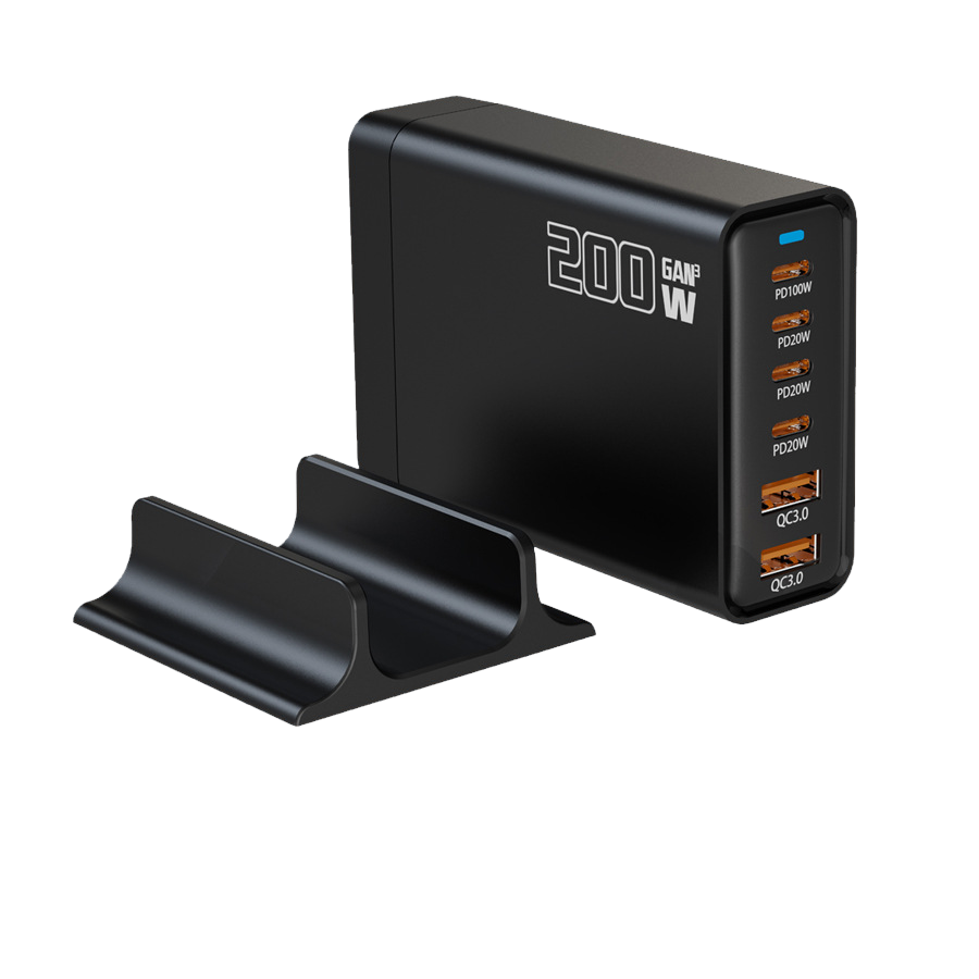 Discover the 200W Gallium Nitride Charger, a versatile and efficient multi-port charging solution. Featuring advanced fast charging technology across multiple voltages, this charger is designed to meet the needs of a wide range of devices with a compact and powerful design.
